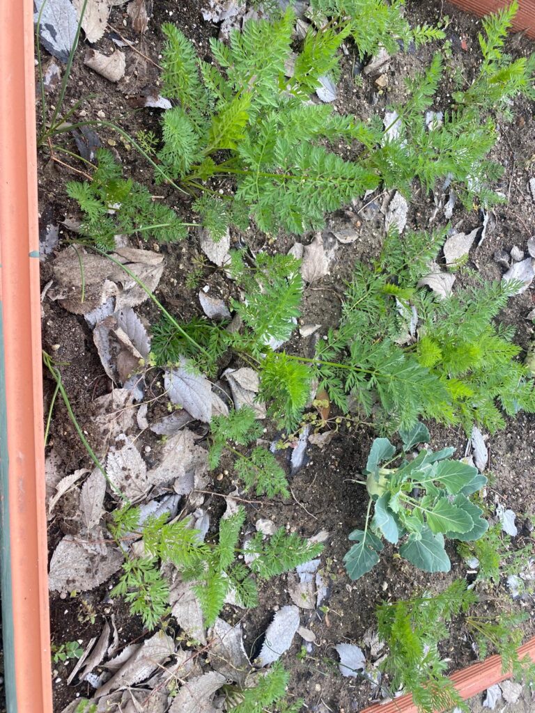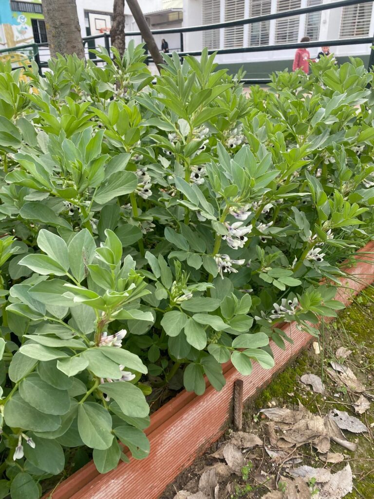 A pesar de las intensas lluvias, nuestro huerto va creciendo,, pronto tendremos col-rábano, zanahorias, ajos, acelgas y habas.