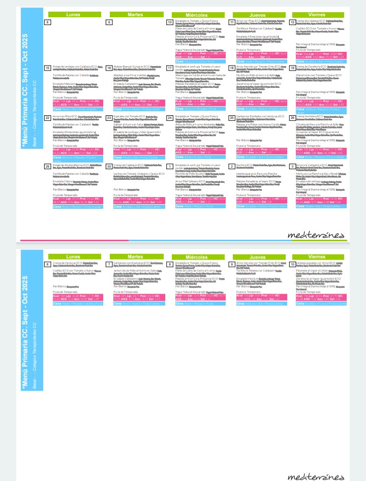 MENÚ SEPTIEMBRE/OCTUBRE 2025